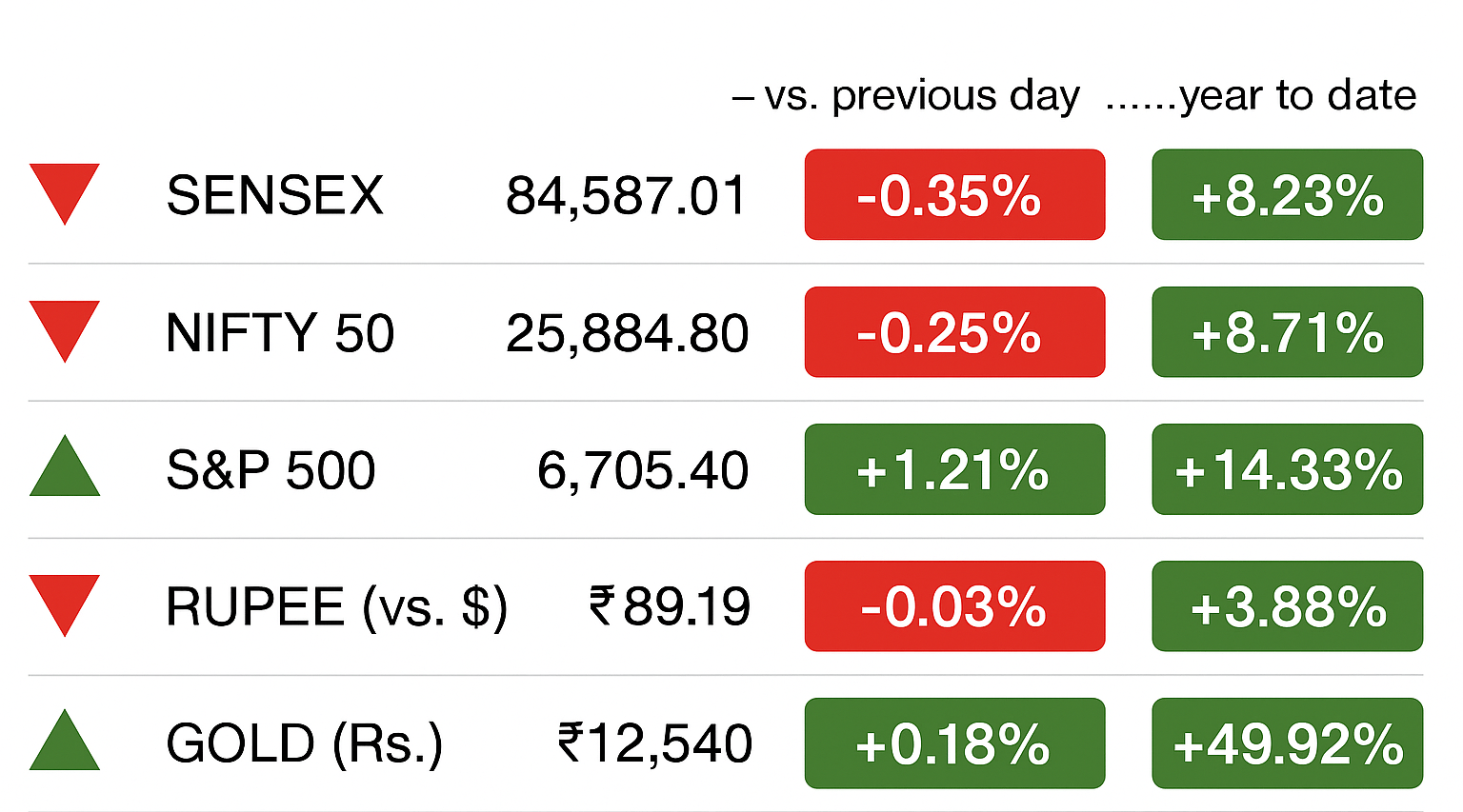The Indian stock markets ended the session on a cautious note, with benchmark indices fluctuating throughout the day amid mixed global signals. Profit-booking in heavyweight stocks and muted overseas market cues kept sentiment subdued. Broader indices showed selective buying, but overall trade remained range-bound ahead of key macroeconomic triggers.