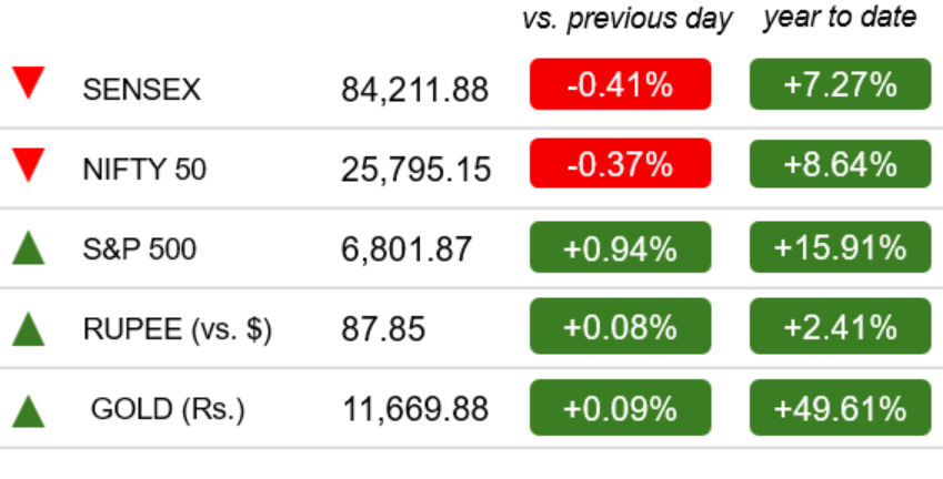The Indian stock market closed lower on Thursday, with the Sensex and Nifty 50 settling in the red. Broader markets, including the Midcap and Small-cap indices, also declined, despite outperforming the benchmarks.